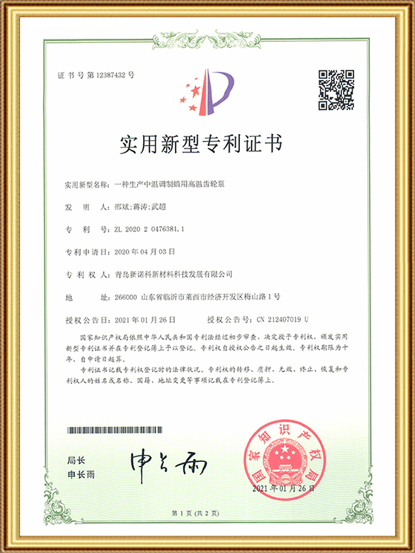 【实用新型专利】一种生产中温调制蜡用高温齿轮泵
