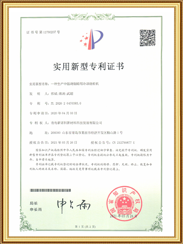 【实用新型专利】一种生产中温调制蜡用冷却造粒机