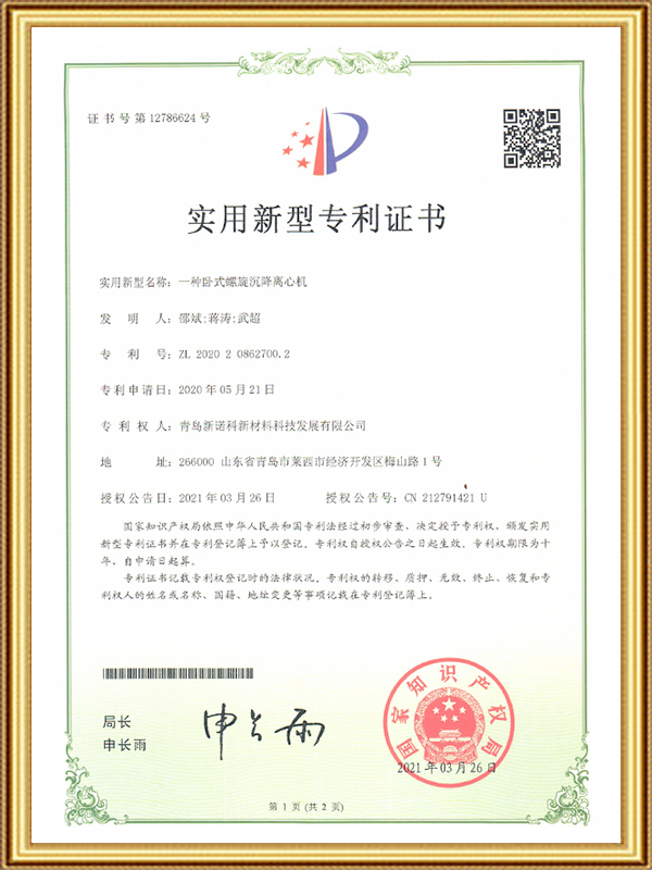 【实用新型专利】一种卧式深旋沉降离心机