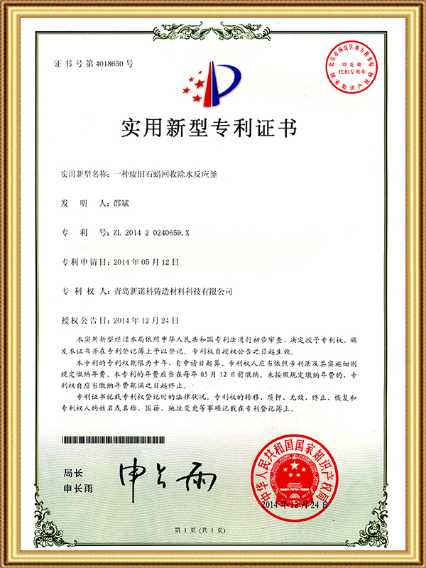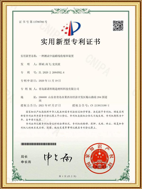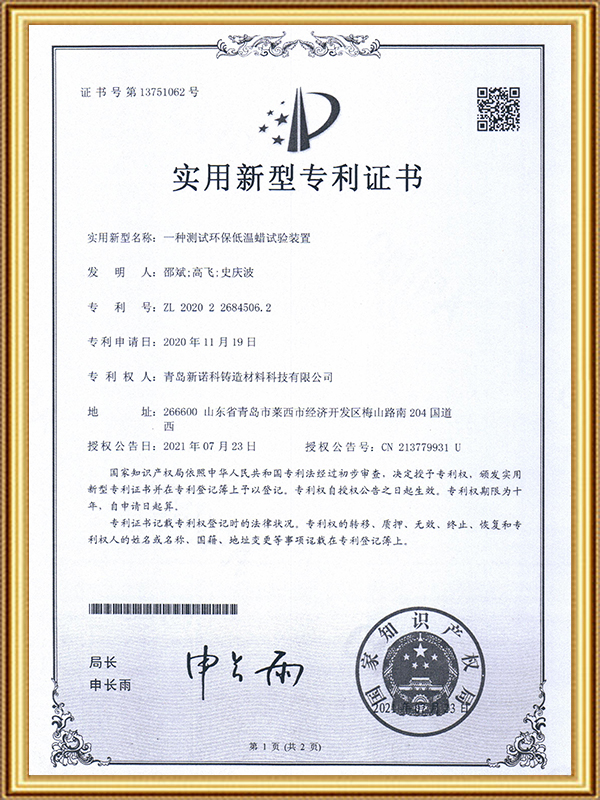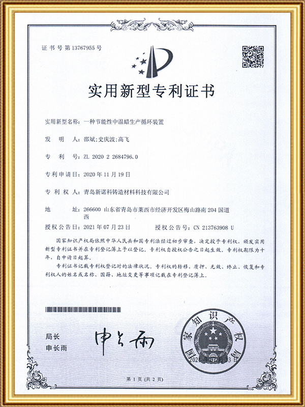 Xinnuoke Company has been awarded the honorary title of "China Foundry Medium Temperature Wax Production Base".